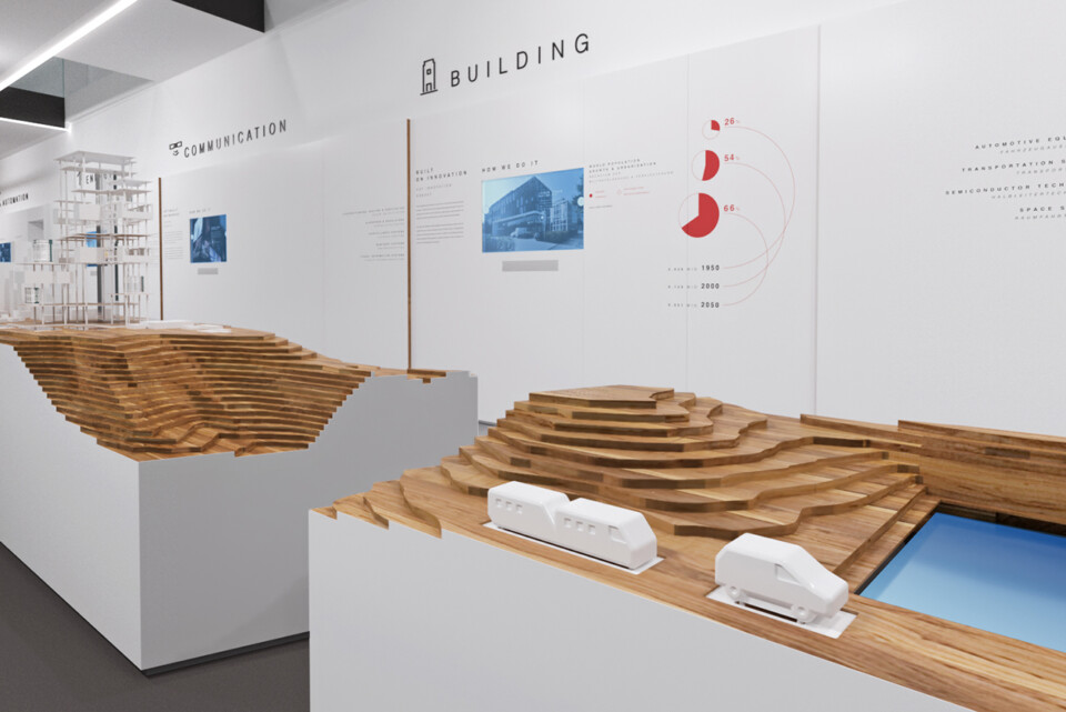 We created an exhibition for the new Mitsubishi Electric building in Duesseldorf, Germany. The exhibition presents the company and its products through interactive systems such as screens, models, and virtual reality. The final object is an interactive table where industrial robots present Mitsubishi products.