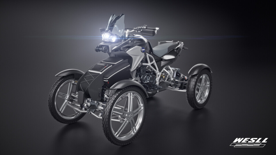 3D Visualization of a Wesll 900 GS AWD Hybrid Expedition quad. This quad is based on a BMW 900 GS motorbike and offers unparalleled capability On and Off-Road.